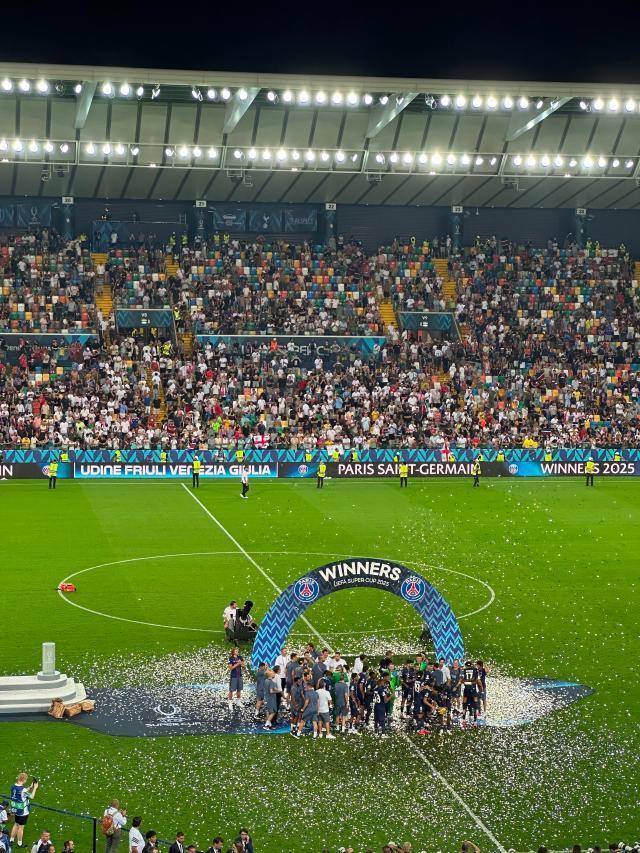 半个意大利等着看巴黎人的见笑,统统乌迪内在给“自家孩子”加油。备受期待的意大利门将德比,到头来无缘在欧洲超等杯的赛场上得见,巴黎在比赛前夜与唐纳鲁马决裂,让他们从情感上占到了赛事人的对立面。另一方面,维卡里奥不仅诞生在乌迪内,如故乌迪内斯青训系统的居品,此番是真确真义上的荣归故里。距离终场哨响还有十几分钟,意大利人的愿望险些就要完毕,但巴黎先是在旧例时间压哨让2追2,又在12码互掷中献艺逆转,最终在远征军看台下方捧起奖杯。